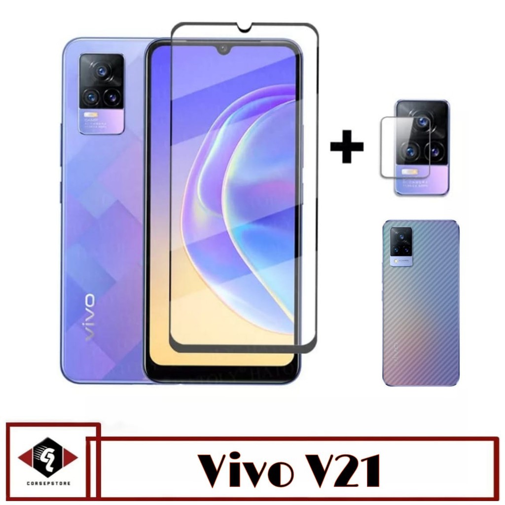 Package 3 In 1 Tempered Glass Screen Vivo V21 Bonus Anti Scratch Camera And Carbon Skin Shopee Singapore